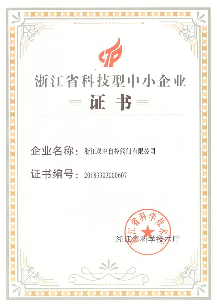 產品中心 企業榮譽>> 浙江省科技型中小企業證書 返回首頁